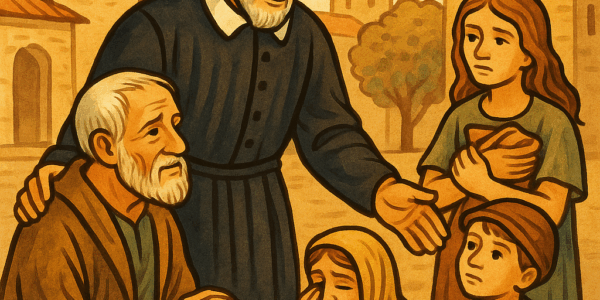 Dans la paroisse de Chatillon-sur-Chalaronne, il s’entoure de dames aisées et charitables qui l’aident à subvenir aux besoins des miséreux : les Dames de la Charité. Cette confrérie va inspirer plus tard la naissance des Filles de la charité qu’il fondera avec sainte Louise de Marillac en 1633.