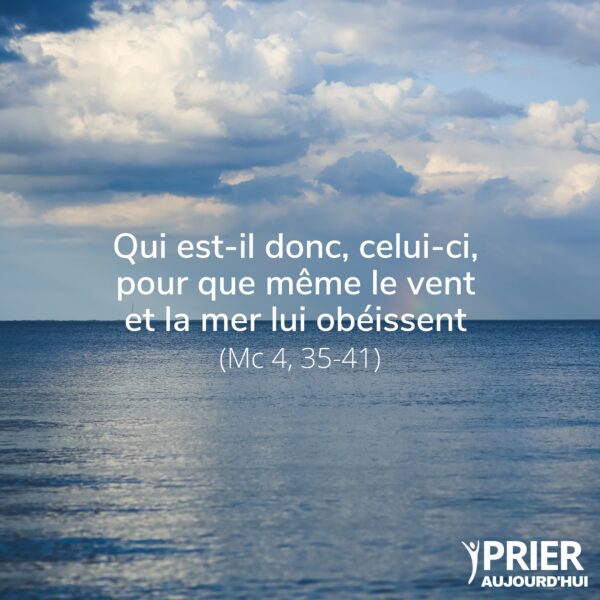 Pour la première fois dans l’Evangile de saint Marc, Jésus et ses disciples se rendent sur l’autre rive du lac, en territoire païen. Là-bas, un possédé par un esprit impur se précipitera sur eux dès leur arrivée. Des païens qui ne connaissent pas le vrai Dieu exigeront aussitôt leur départ. Mais avant même qu’ils ne posent les pieds sur cette terre païenne, une tempête se lève et tente de faire couler leur barque. Tout s’oppose à la venue de Jésus. Des forces se soulèvent comme pour empêcher la libération du possédé et la conversion des tous premiers païens. Réveillé par ses disciples paniqués, Jésus menace le vent et la mer déchainée, qui lui obéissent. De la même manière qu’il impose le silence aux esprits impurs, il ordonne à la mer de se taire. Les disciples sont complétement bouleversés. Jésus commande la mer. Il a autorité sur elle et il n’en a pas peur. Sur ce qui est le symbole du mal dans la bible, sur ce qu’il y a de plus dangereux, de plus effrayant, Jésus a autorité. Nous rencontrons souvent des forces qui s’opposent à l’annonce de l’Évangile. Jésus, le maître du monde, à qui le vent et la mer obéissent, a promis qu’il serait avec nous jusqu’à la fin des temps, dans la barque de l’Église. Qu’il garde nos cœurs dans la paix, dans toutes les tempêtes que nous traversons.